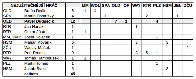NEJUŽITEČNĚJŠÍ HRÁČ – PAVEL DUDAŠČÍK
