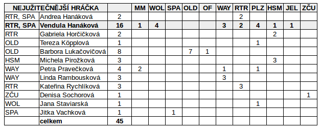 NEJUŽITEČNĚJŠÍ HRÁČKA – VENDULA HANÁKOVÁ